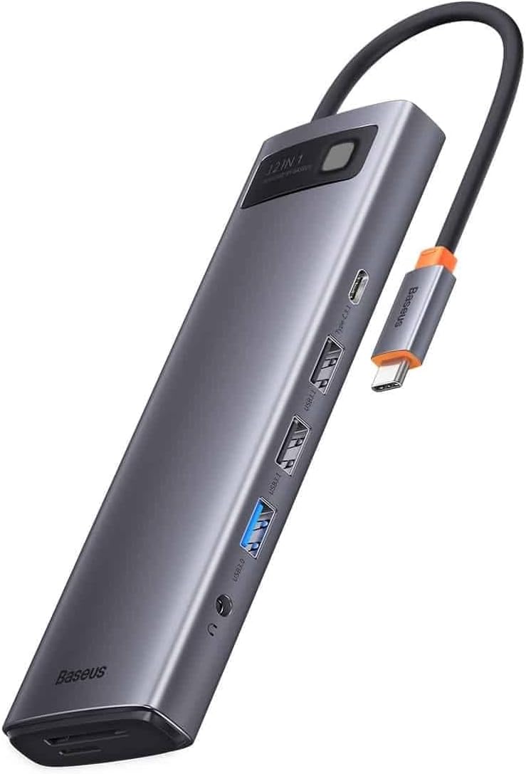 The Baseus 12in1 Hub is designed to streamline your workspace by offering extensive connectivity options through a single USB-C port. It features a durable metal gleam finish and compact design.